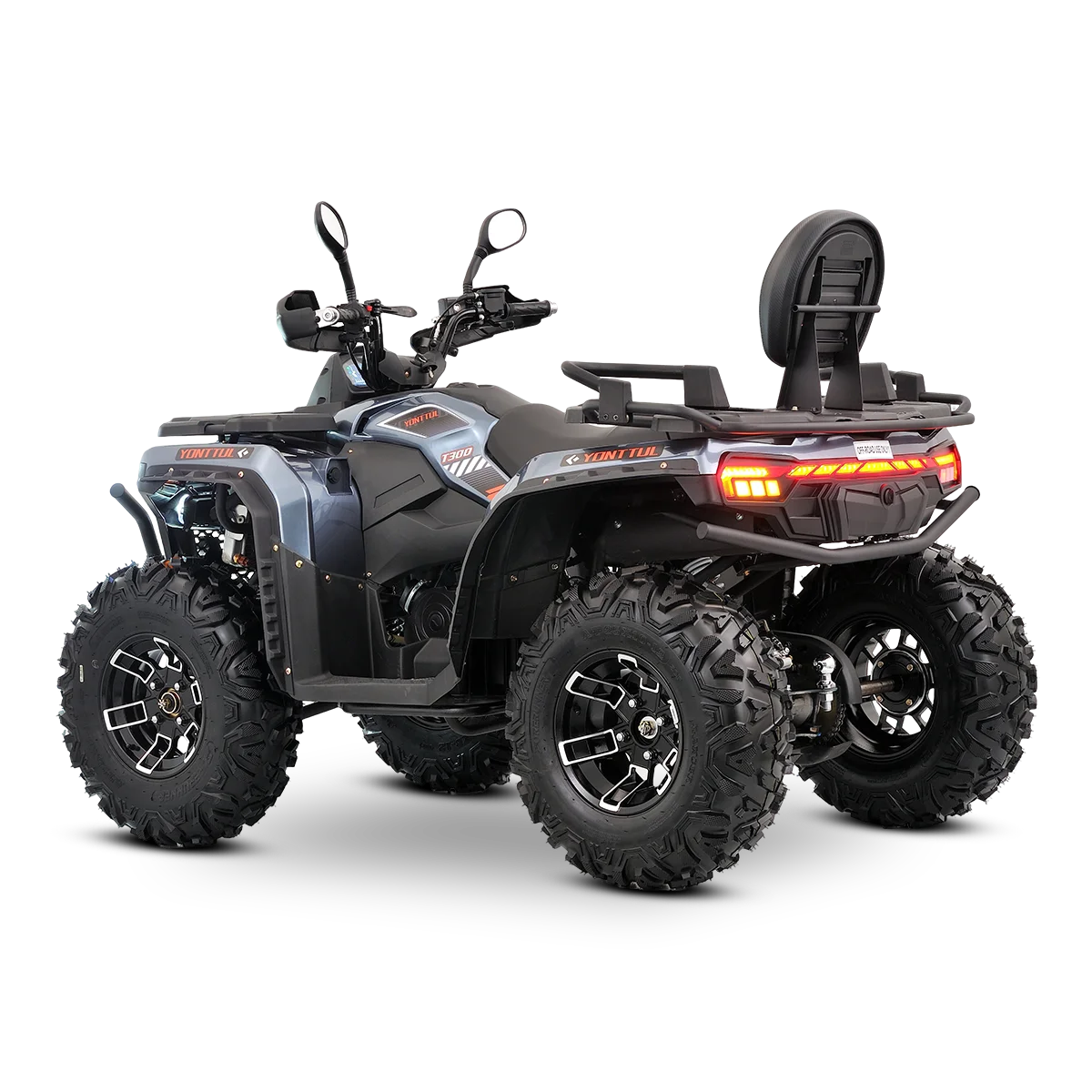 Weighing in at a nimble package, the T300 is built to maneuver where bigger ATVs struggle. Tight trails, narrow passes, muddy turns—it glides through with ease. The lightweight chassis inspires confidence in beginners while keeping things fun for experienced riders looking for a playful ride.