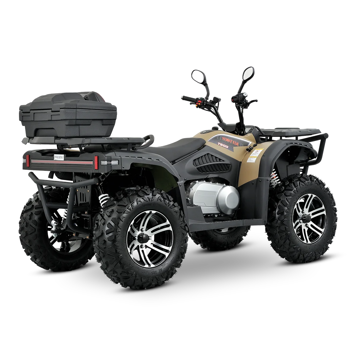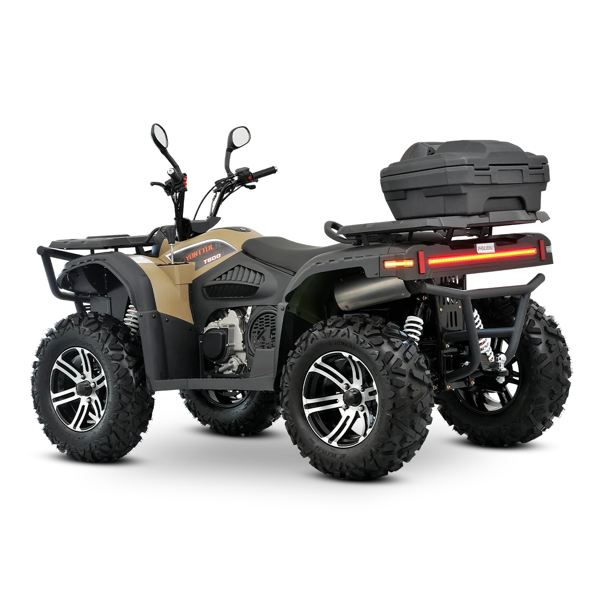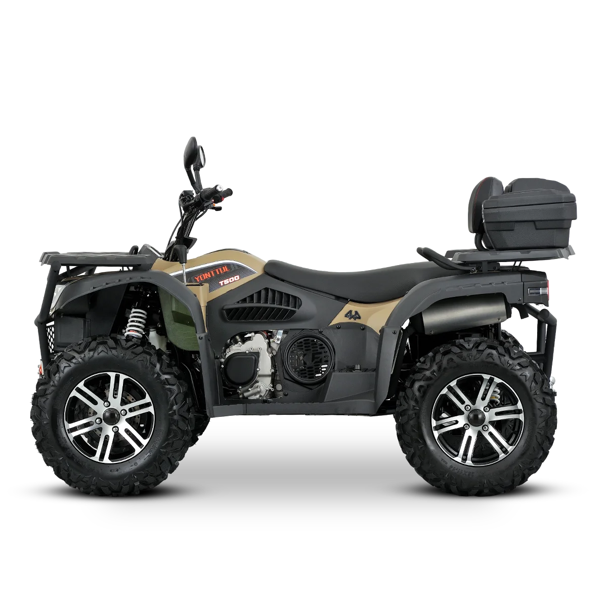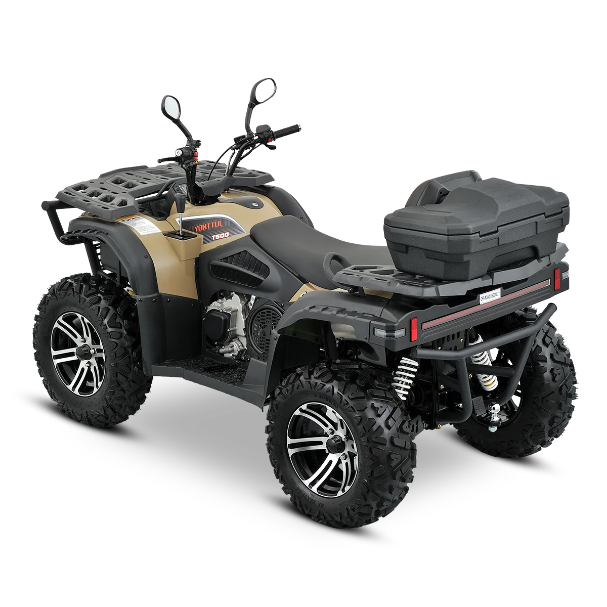 The T500 isn’t for beginners. It’s for riders who seek out the toughest lines, who measure fun in mud depth and climb angle. High ground clearance, aggressive mud tires, and full skid plates front to rear—it’s ready to go where others fear to tread.
